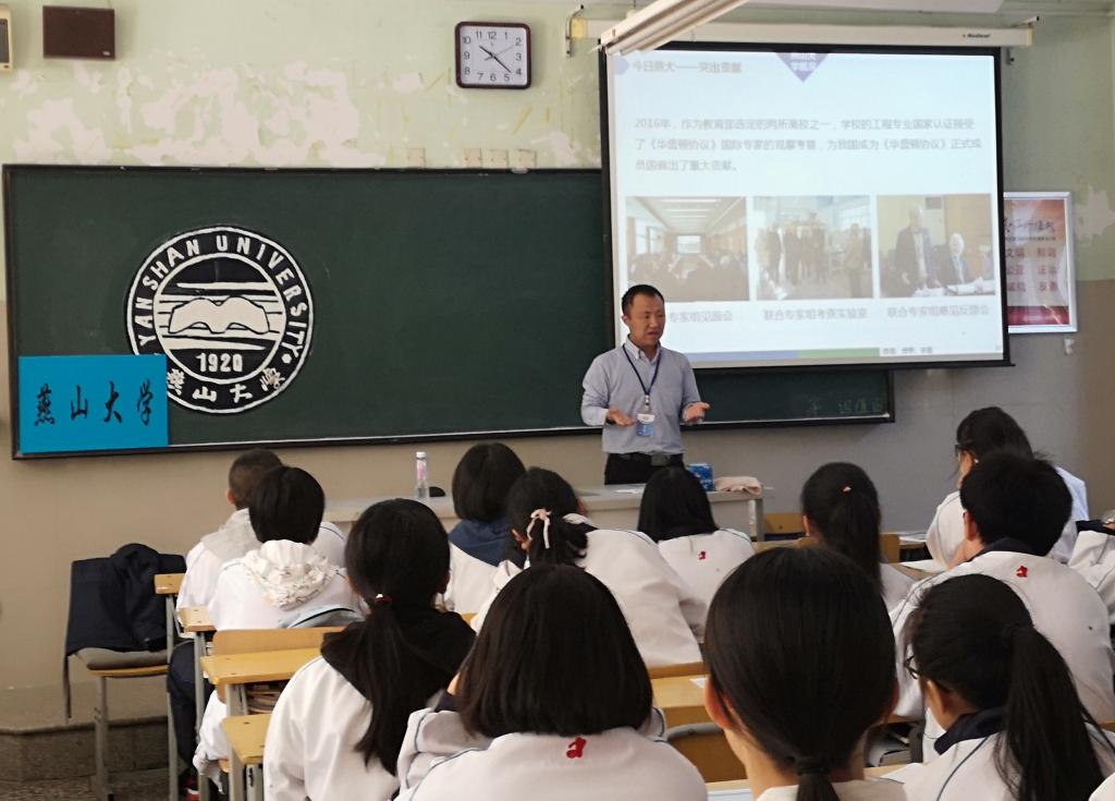 10月11-17日,我校招生就业处和学院老师分别赴河北省邯郸一中、石家庄一中、石家庄二中、衡水中学、唐山一中等高中参加2018年度的“大学节”高校宣传活动。