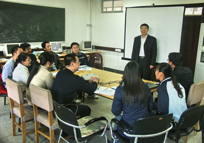 现代教育理论认为:“教学的真正含义是变‘学会’为‘会学’。未来社会的文盲,将不是没有掌握一定知识的人,而是那些不会学习的人。”因此,为了提高学生们的自主学习能力、自主思考能力以及独立解决实际问题的能力,赵永生老师采取了定期学术交流探讨会的方式。5年来,无论行政工作多忙,他都要抽时间定期与学生进行交流探讨,坚持每周一次采用幻灯片汇报的形式与所带的学生交流学习心得,从浅入深,从表面到本质,从阶段到整体。并且,赵老师还组织本科生、硕士生、博士生一起参加,不仅加强了本、硕、博之间的交流,增强了学生的学习能力,特别是还开阔了本科生的视野,增强了他们的学术交流能力。这正 印证了叶圣陶老先生的一句话:凡为教,目的在于达到不需教。