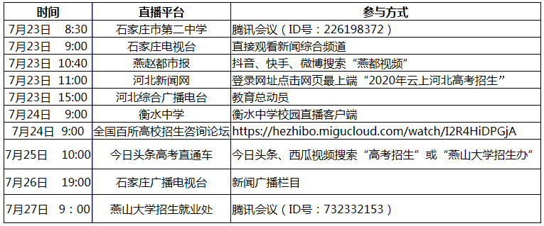 同时,在考生志愿填报集中时期,我校将通过直播方式与广大考生面对面交流。具体安排如下: