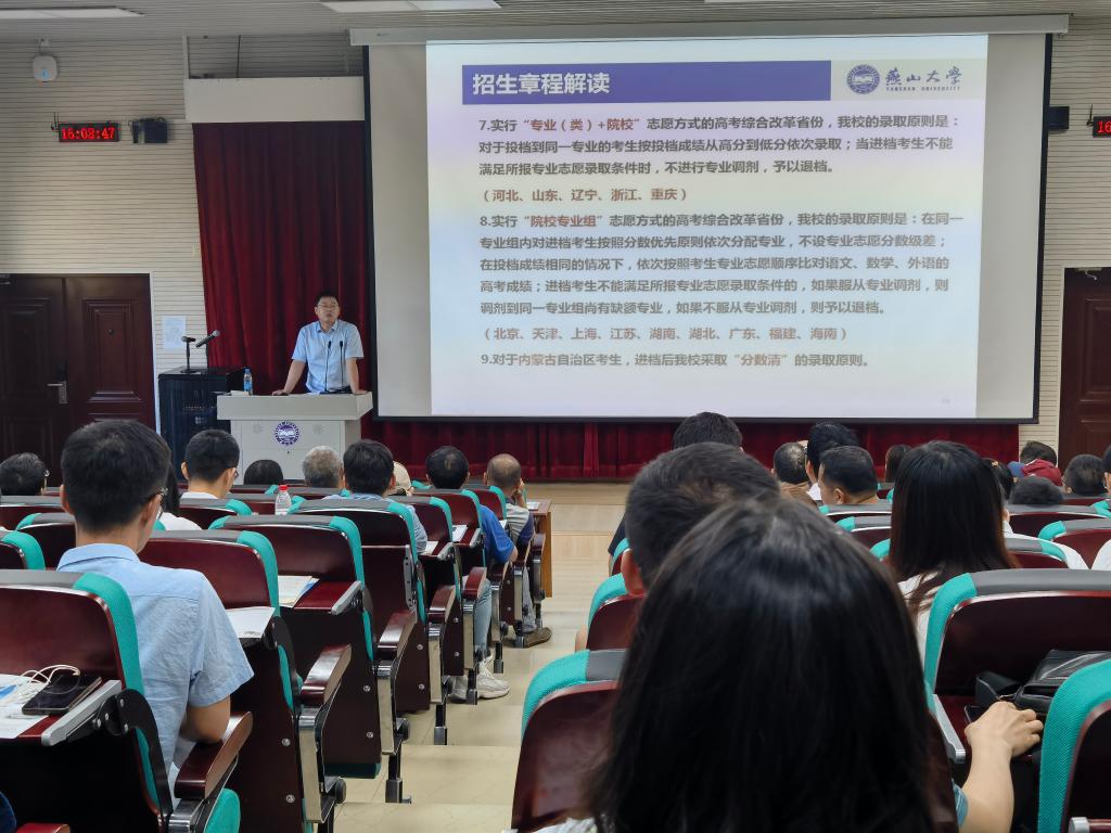 会上,招生就业处处长张红兵向参加本次招生宣传工作的人员表示感谢。他鼓励各招生宣传组积极研读招生政策,认真谋划落实今年志愿填报期间的招生宣传工作;提示大家要提高安全意识,注意疫情防控,迎接工作挑战。招生就业处副处长宋晓飞就学校招生章程、招生政策、志愿填报等有关内容对宣传组成员进行了培训;同时对高考改革、大类招生培养、招生宣传常见问题及纪律要求等注意事项进行了详细解读。